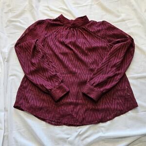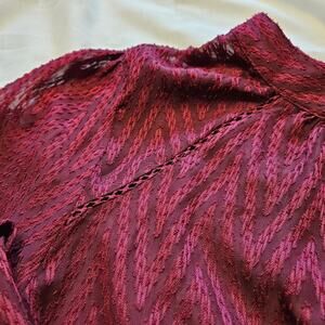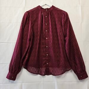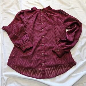 Free People Merlot After Midnight Chevron Sheer Button Back Size Medium