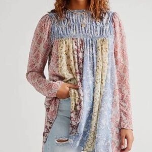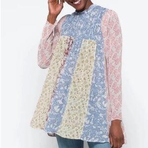Free People Merrie Mix Print Baby Doll Style Tunic Lilac Combo Size Medium