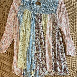 Longline design Patchwork Tunic / Mini dress Flowy Floral Keyhole back Button closure