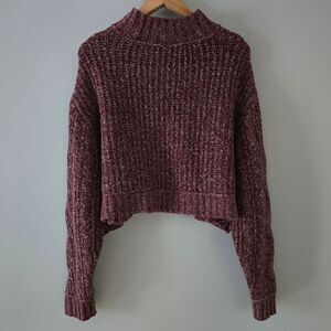 Free People Merry Go Round Cable-Knit Sweater In Very Berry Size L