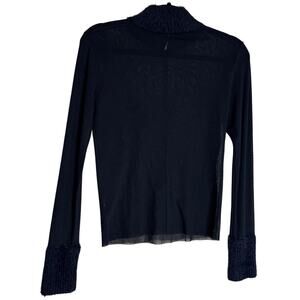 Free People Mesh Top Blouse Women Small Black Long Sleeve Wool Mock Neck Faux Fur Sheer Pullover Fashion Sexy Coquette Classic Dark Academia Goth