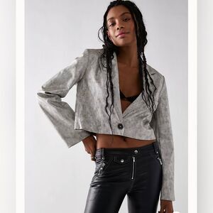 Free People Metallic Blazer Vegan Leather Cropped NWOT size XS