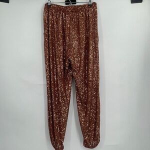 Free People Metallic Bronze Morelia Sequin High Waist Pull-On Jogger Pants Small