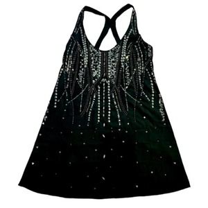 Free People Metallic Jewel Embellished Mini Slip Dress Black XS Festival Gala