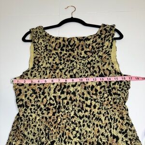 Turn heads in this stunning Free People metallic leopard print mini dress. Features a bold gold and black animal print with shimmering metallic thread, a scoop neckline, and body-hugging silhouette. Perfect for nights out, concerts, or special events.