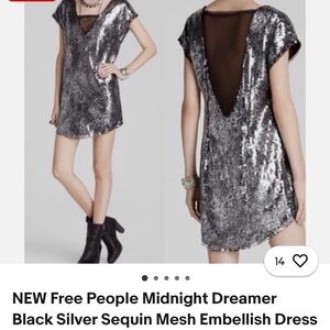 Free People Metallic Ombre Sequin Shift Dress Silver Black Size Large