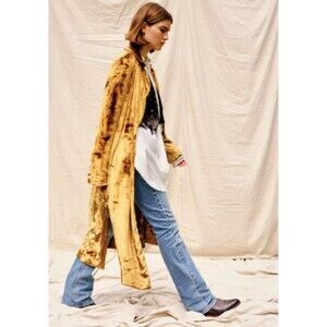 Free People Metallic Sienna Golden Combo Velvet Duster Coat Sz Small $700 New