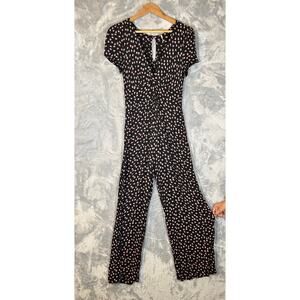 Free People Mia Jumpsuit Black Rosette Floral Wide Leg 4 Feminine Cottage Small