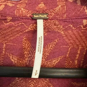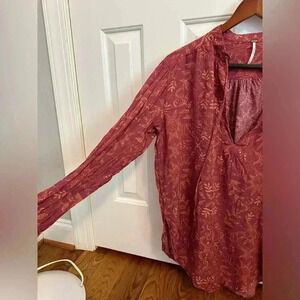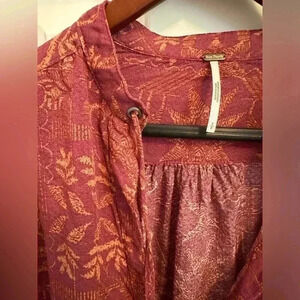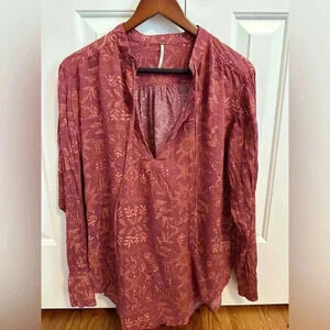 Free People Mia Print Tie V Neck Long Sleeve Tunic Top size Small