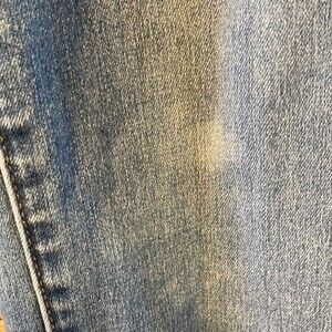 Free People Mid Rise Skinny Jeans With Elastic Waist Band Size 26. These jeans are in pre-loved condition. There are two spots from wear, one on each knee. Other than that they are in great condition and have an elastic waistband with button closure.