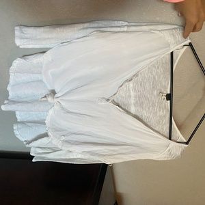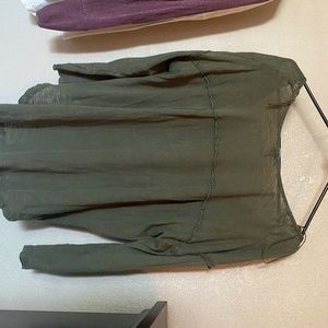 3 Mid-sleeve Free People Blouses. They have been worn, but there is not damage to the clothes. The Green and White shirt looks good tied up with a pair of high waisted shorts and boots or sneakers.