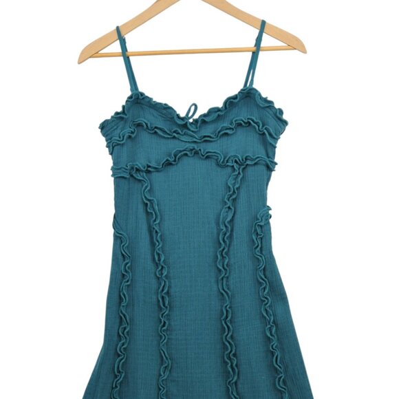Free People Midi Blue Ruffle Detail Dress w/ Detachable Straps