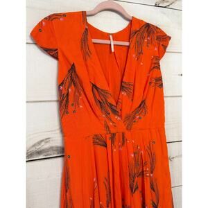 Free People Midi Dress Orange Floral Print Size 4 Pockets Boho Chic