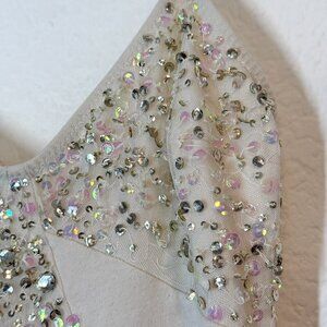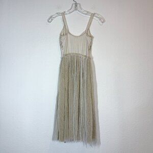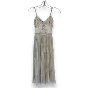Free People Midi Dress Sequins Sparkling Sheer Glitter Gold Fairycore Size XS