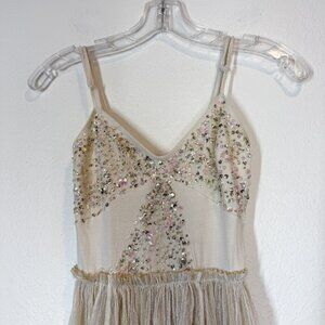 Free People Midi Dress Sequins Fairy Princess Sheer Glitter Gold Fairycore XS