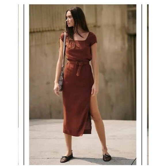 Free People Midi Dress Trop Belle Brown Cotton size L NWOT