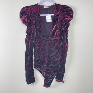 Free People Midnight Combo Magic Hour Velvet Burnout Bodysuit NWT Size XS