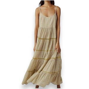 Stun in this gorgeous maxi slip featured in a classic tiered silhouette with woven embroidered trimming throughout in a perfectly printed design.