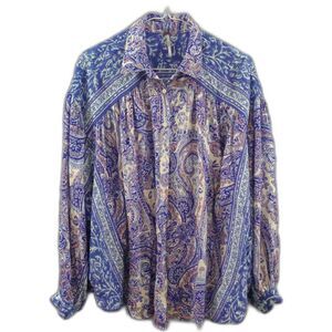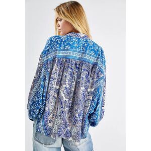 Perfect in paisley, this effortless top is featured in a slouchy, relaxed fit with button-front closure and exaggerated sleeves for added shape.