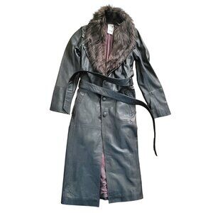 Immerse yourself in the drama of timeless elegance with this leather trench coat. The fur collar whispers of vintage sophistication, while the belted design cinches your silhouette with effortless grace. A luxurious piece crafted for bold style statements.