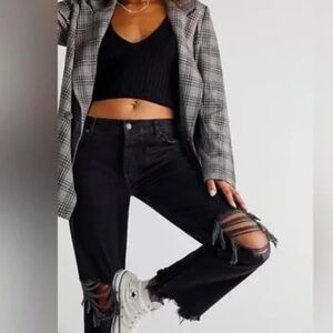 New with tags Free People Maggie Mid-Rise Straight-Leg Jeans Washed Black . The epitome of cool-girl chic, these jeans from our We The Free collection are the staple style for keeping it simple and always stylish. The Fit: Mid-rise, straight-leg silhouette; runs slightly small The Fabric: Authentic, non-stretch rigid denim Why We Love It: Effortlessly edgy, perfect distressing, vintage-inspired design Style note: This style can also be worn low-slung at the hips for an alternate, retro-inspired look. We The Free: Heritage inspired and lived-in staples. We The Free is an in-house label. Contents + Care: -100% Cotton -Machine Wash Cold Measurements for size 28: -Inseam: 27 in -Short Inseam: 25 in -Hips: 40.5 in -Waist: 32.5 in -Rise: 10.5 in