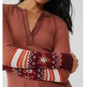 Free People Mikah Layering Cuff Waffle Knit Top Size XS Autumn Combo