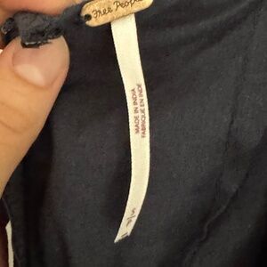 This Free People Mikayla jumpsuit is a standout boho piece that blends comfort with bold style. Made from super-soft cotton in a dark grey/navy tone, it features an intricate eyelet design, oversized ruffled shoulders, and a fitted bodice with a crossback lace-up open back and zip waist. The pants are extra long with a tapered, jogger-style bottom that creates a dramatic, flowy silhouette while still being easy to wear. Perfect for making a subtle yet striking statement—whether you’re headed to a special event, dressing up for a night out, or styling it casually for a coffee date, this jumpsuit delivers effortless Free People charm.