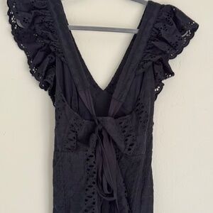 Free People Mikayla Navy Eyelet Ruffle Open-Back Jumpsuit | Size S
