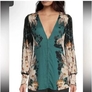 Free People Mikayla Printed Tunic Green Balsam Combo NWT 🌸size M