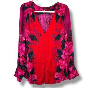 Free People Mikayla Scarlet Combo Red Printed Floral Front Hook Blouson Blouse