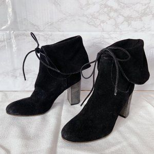 Free People Mila Women's Ankle Boots Heels Black Suede Fold Over