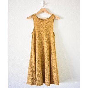 Free People Miles Of Lace Mini Dress in Gold