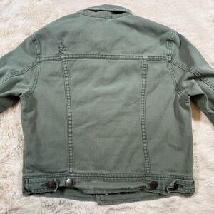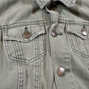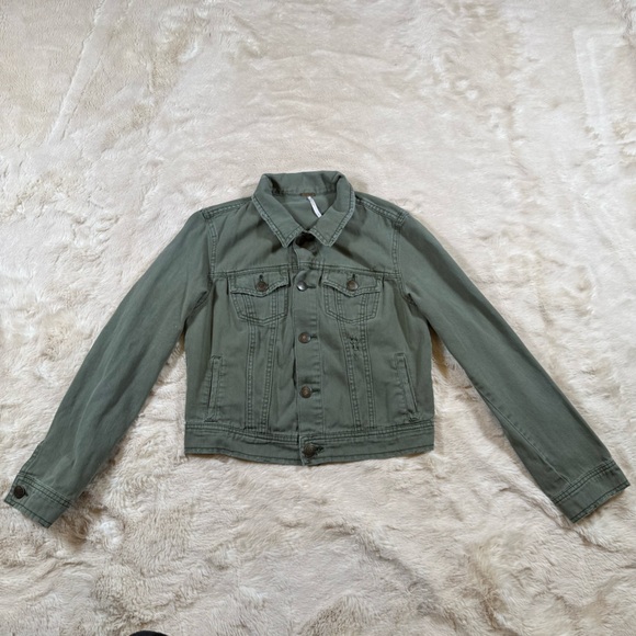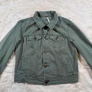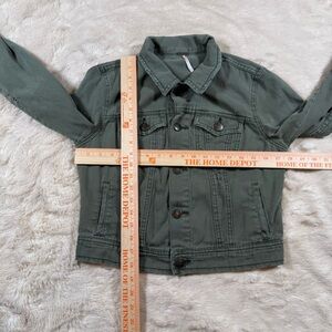 Free People Military Green Distressed Soft Cotton Jean Denim Jacket Size 8
