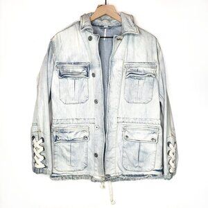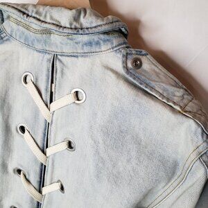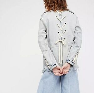 Free People Military Lace Up Back Denim Jacket XS Coat Jean