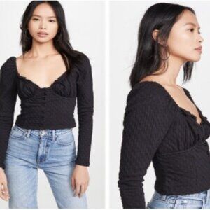 Free People Milkmaid Puff Sleeve Corset Top M NEW Cottagecore Boho Ladybug Blue