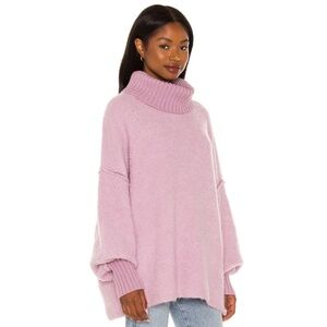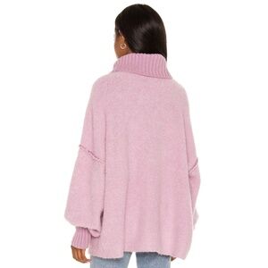 Ribbed foldover turtleneck and ribbed cuffs. Blouson sleeves with drop shoulders. Soft, fuzzy knit boucle fabric. Oversized silhouette. Style No. OB1217253.