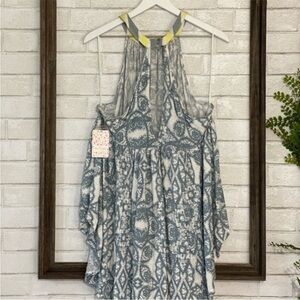 Free People gives you whimsical flair in this sleeveless high-low tunic top with a halter neckline and draped rounded hem.