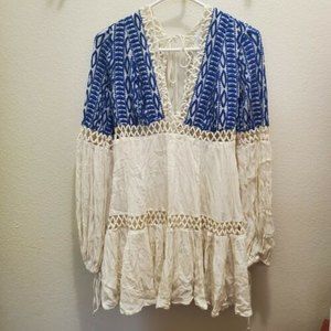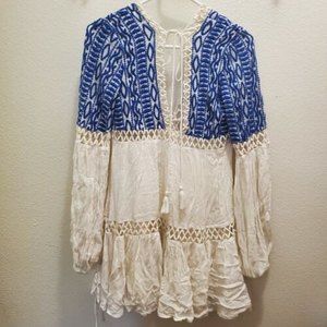 Free People Mini Boho Embroidered Women's Deep V Dress Bell sleeve Sz 4
