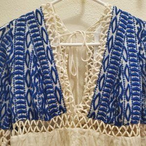 Free People Mini Boho Embroidered Women's Deep V Dress Bell sleeve Sz 4.