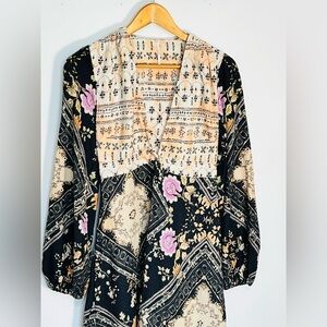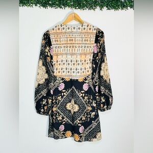 Free People Mini Boho Plunge Dress Size Xs Long Sleeve Descanso Floral