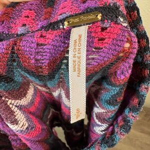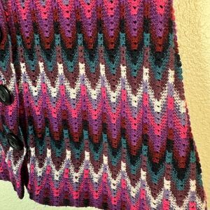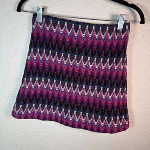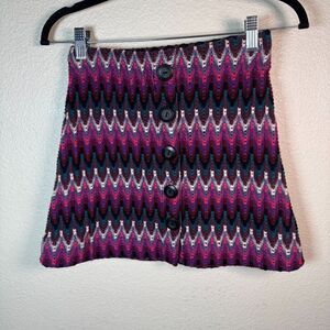 Free People Mini Chevron Knit Skirt Purple Button Front Stretch Boho Retro Sz S