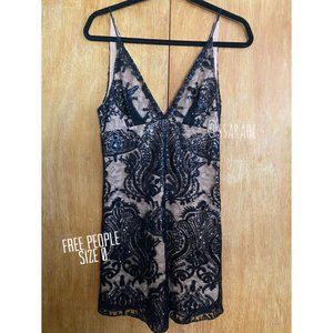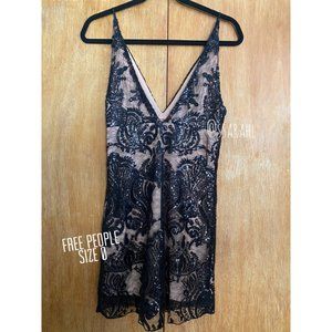 Free people mini dress with sequined lace embroidery. Lined. Hidden side zipper. Excellent condition. Size 0