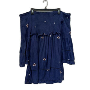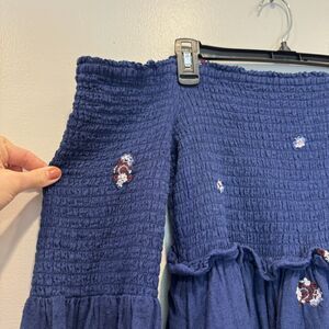 Free People Mini Dress Counting Daisies Navy Smocked Embroidered Women sz Large