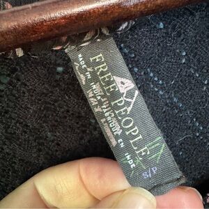 Free People Mini Dress Crochet Trim Two Tier Ruffle Hem 3/4 Sleeve. Boho. Small