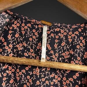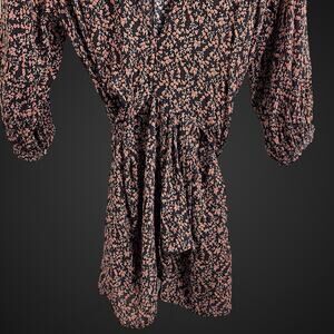 Free People Mini Dress Deep V Neck Long Sleeve Tie Back XS