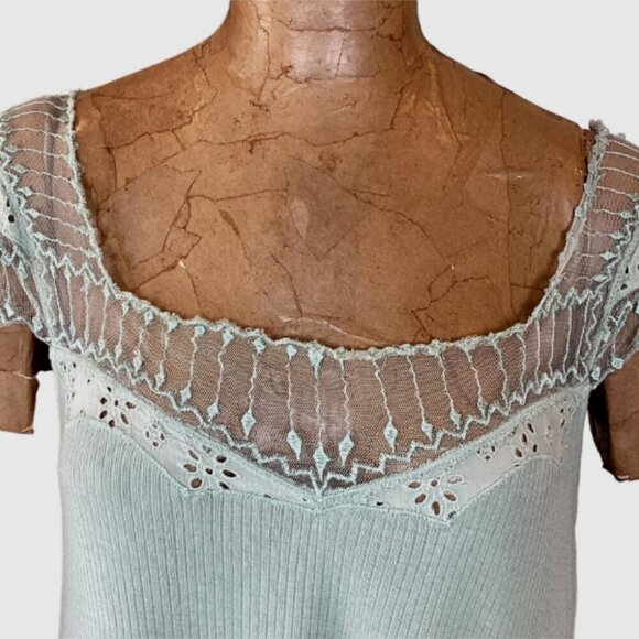 Free People Mini Dress Mesh Lace Tiered Ruffle Hem Sz L Green #25Y