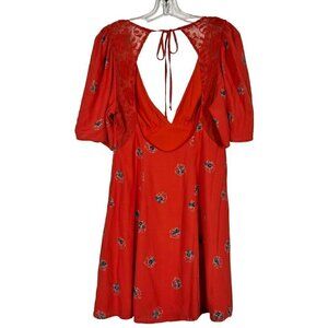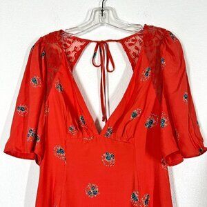 Free People Coral Red Floral Print Mini Dress in a Tag Size 2.