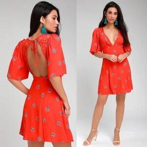Free People Coral Red Floral Print Mini Dress in a Tag Size 2.
