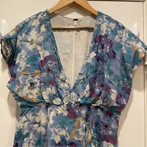 Free People Mini Dress Women’s Medium Blue Floral Bohemian Feminine Modal Spring