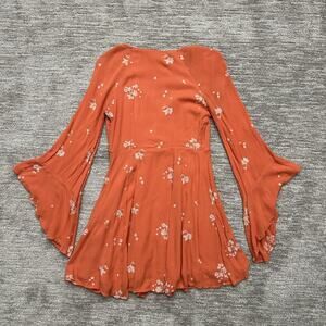 Free People Mini Dress Womens S Orange Floral Embroidered Jasmine Boho